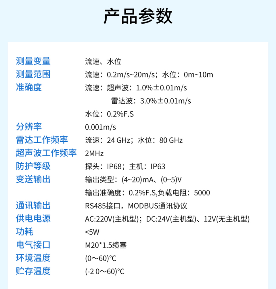 產(chǎn)品描述:聯(lián)測FAC300超聲波雷達雙波流量計,一款應(yīng)用在自然水域、渠道或管道中測量水的流速、水位的產(chǎn)品。產(chǎn)品高度集成了雷達測流和超聲波測流優(yōu)勢,實現(xiàn)滿管非滿管全場景測流,同時兼具雷達產(chǎn)品頂部安裝運維量極低的特點,也因此得以輕松應(yīng)對復(fù)雜惡劣的管網(wǎng)工況。超聲波雷達雙波流量計利用雷達多普勒和超聲波多普勒復(fù)合雙模傳感器來感知水體流速,同時通過靜壓式和電導(dǎo)率傳感器復(fù)合傳感器感知水位變化,從而計算出實時流量。