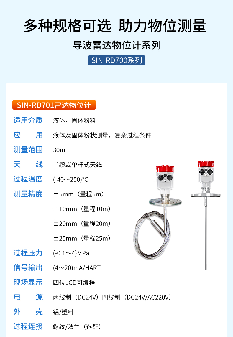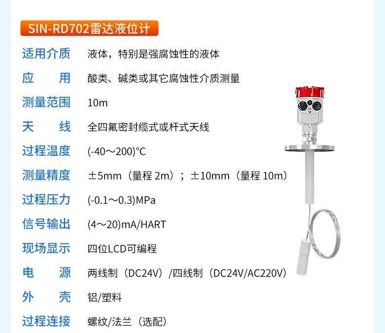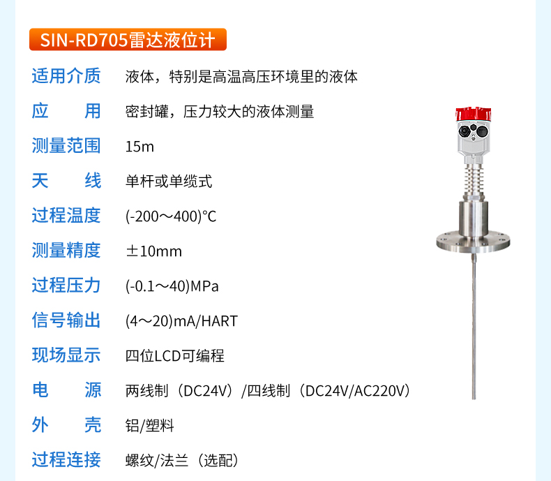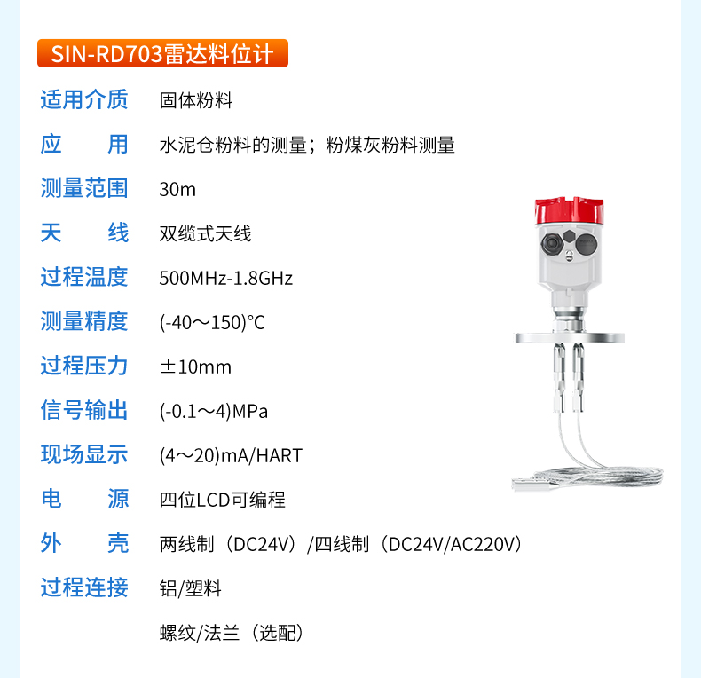 產品名稱:聯測_SIN-RD703雷達料位計_適用于水泥倉粉料