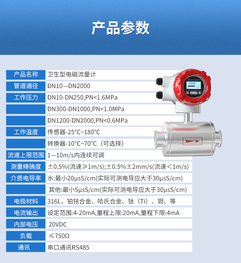 產(chǎn)品名稱:聯(lián)測(cè)_LDG-SIN衛(wèi)生型電磁流量計(jì)_卡箍流量計(jì)_食品/制藥行業(yè)