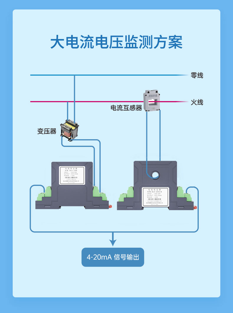 產(chǎn)品描述:電流變送器可以直接將被測(cè)主回路交流電流或者直流電流轉(zhuǎn)換成按線性比例輸出的DC4~20mA(通過(guò)250Ω 電阻轉(zhuǎn)換DC 1~5V或通過(guò)500Ω電阻 轉(zhuǎn)換DC2~10V)恒流環(huán)標(biāo)準(zhǔn)信號(hào),連續(xù)輸送到接收裝置(計(jì)算機(jī)或顯示儀表)。