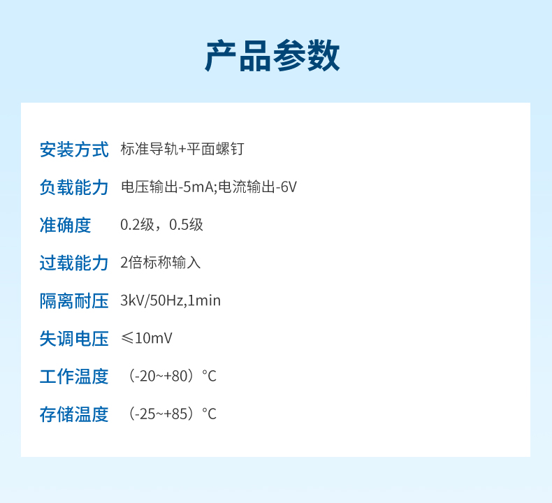 產(chǎn)品描述:電壓變送器是一種將被測(cè)交流電壓、直流電壓、脈沖電壓轉(zhuǎn)換成按線(xiàn)性比例輸出直流電壓或直流電流并隔離輸出模擬信號(hào)或數(shù)字信號(hào)的裝置。