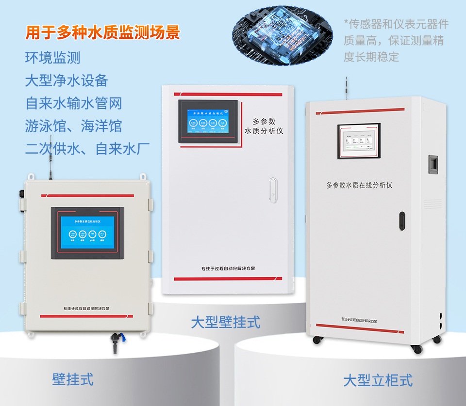 產品描述:多參數水質在線分析儀是本公司自主研發制造的新一代飲用水水質監測設備,該設備可廣泛用于城市或村鎮自來水廠、自來水輸水管網、自來水二次供水、用戶末梢、室內游泳池、大型凈水設備和直飲水等水質在線監測,是水廠生產過程控制、水利水務管理、衛生監督等領域必不可少的在線分析設備。
