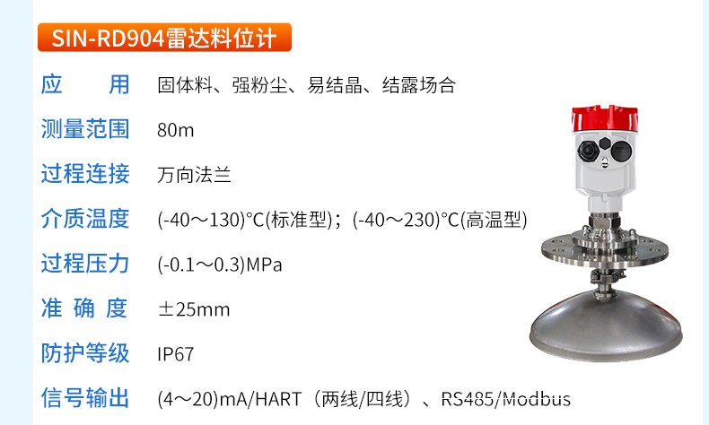 產品名稱:聯測_SIN-RD909雷達液位計_0-70米水位