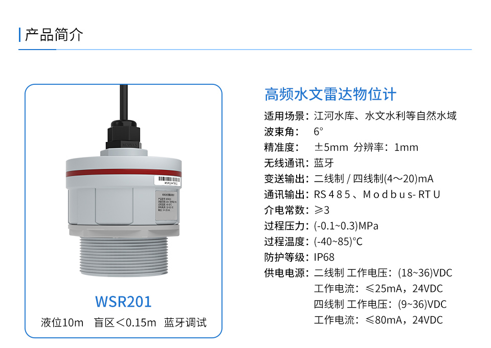 產品描述:雷達液位計是利用高頻微波雷達技術實現對水文信息的實時監測和精準測量。相較于傳統的水文監測方法,雷達技術具有測量精度高、實時性強、適用范圍廣等優勢。本產品波束能量低,對人體及環境均無傷害,還具有不受介質比重的影響、不受介電常數變化的影響、不需要現場校調等優點,廣泛應用江河、水庫、湖泊、灌渠、河道等自然水域水文監測場合。