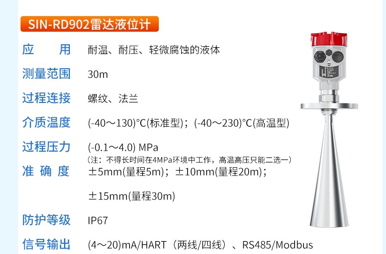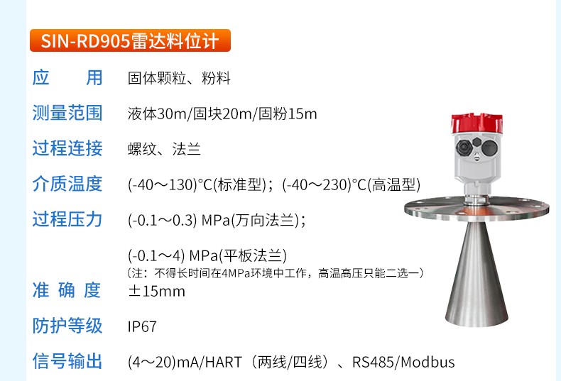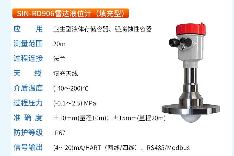 產品名稱:SIN-RD906雷達液位計_適用于衛生型液體存儲容器