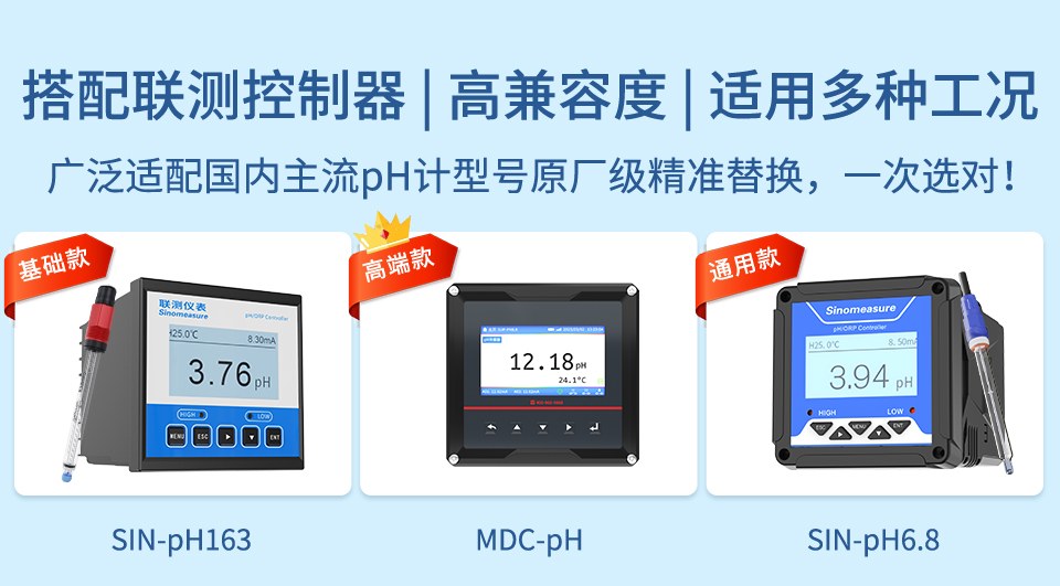 產品描述:pH 電極測量原理為電化學法,原電池原理。原電池是一個系統,它的作用是使化學能量轉成為電能。此電池的電壓被稱為電動勢(EMF)。此電動勢(EMF)由二個半電池構成。其中一個半電池稱作測量電池,它的電位與特定的離子活度有關;另一個半電池為參比半電池,通常稱作參比電極,它一般是與測量溶液相通,并且與測量儀表相連。通過電極內部原電池反應產生的電勢差,傳遞到 pH 控制器,對應算法變送顯示 pH 值。