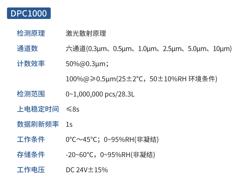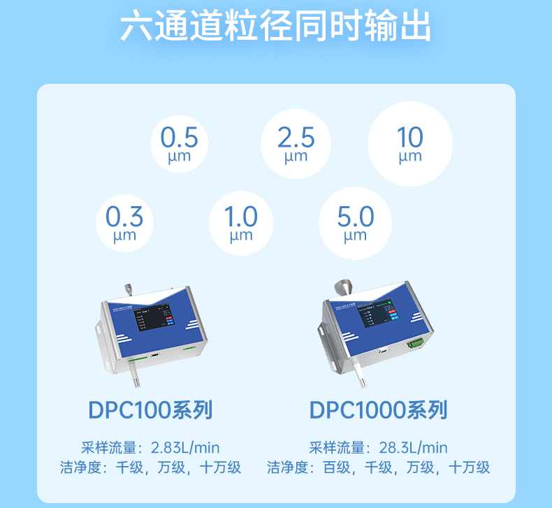 產(chǎn)品描述:這款在線粒子計(jì)數(shù)器采用光學(xué)散射原理,可精確檢測并計(jì)算單位體積內(nèi)空氣中不同粒徑的懸浮顆粒物的個(gè)數(shù),內(nèi)置獨(dú)特的塵源智能識別模塊,具有 28.3L/min 大流量的氣體采樣速率,可同時(shí)輸出六個(gè)通道的顆粒數(shù),示值誤差滿足 JJF-1190 標(biāo)準(zhǔn)