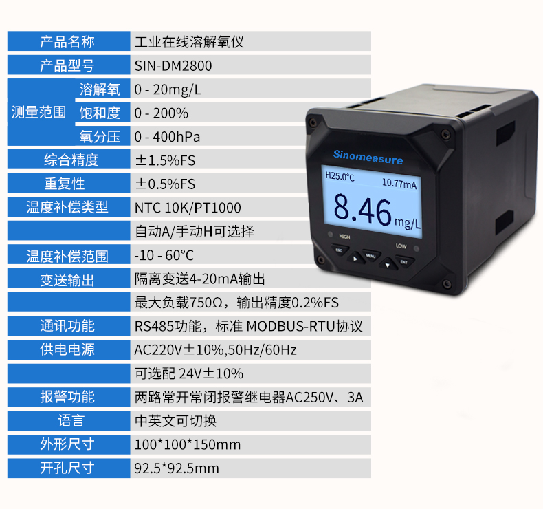 產品描述:熒光法溶解氧在線分析儀是一款智能在線光學分析儀器,是一款廣 泛應用于火電、化工化肥、冶金、環保、制藥、生化、食品和自來水等 溶液中溶解氧、飽和度和溫度的連續監測的儀表。 連續監測數據通過變送輸出連接記錄儀實現遠傳監控與記錄,也可 以連接 RS485 接口通過 Modbus-RTU 協議可方便聯入計算機實現監控與記錄。CN2