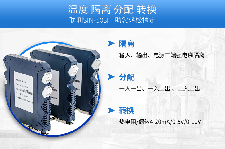 產(chǎn)品名稱:聯(lián)測_熱電阻隔離器_導軌式Pt100熱電阻K型熱電偶信號隔離直流轉(zhuǎn)4-20mA模塊