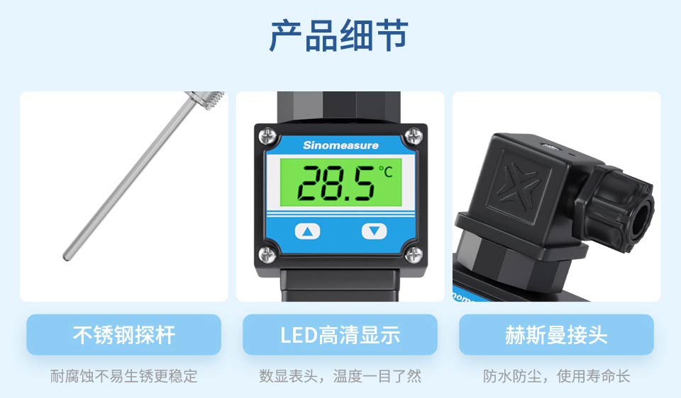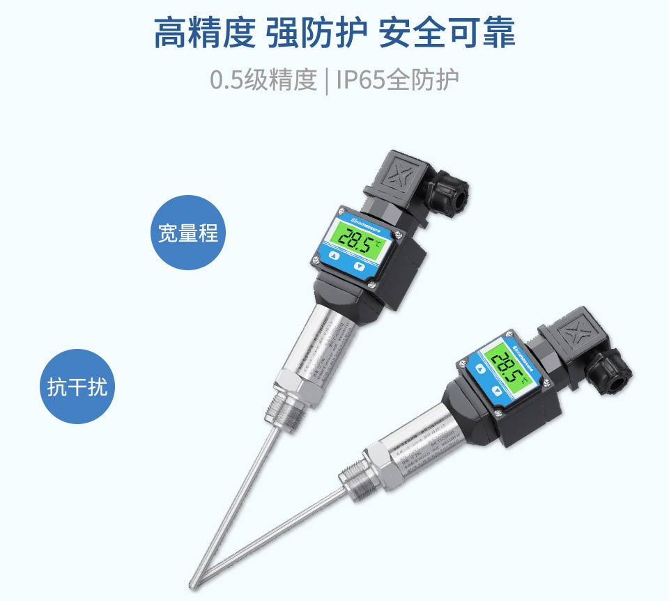 產品描述:本產品使用高穩定性的電路進行信號處理,實現溫度連續測量和輸出,采用高精度24位ADC轉換為數字信號,同時可以實現顯示、遠傳等功能。廣泛應用于石油、化工、電力、輕紡、環保等領域中對水或油的溫度測量。