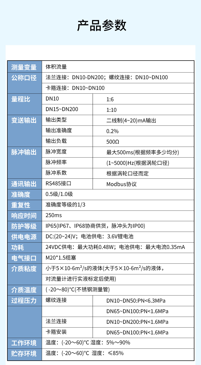 產品描述:本款液體渦輪流量計是一種速度式儀表,用于測量封閉管道中低黏度液體(水、液化石油氣、成品油、輕質原油、有機液、無機液等無纖維、顆粒雜質的液體)的體積流量,連接不同放大器可實現脈沖輸出、電流輸出、現場顯示等多種功能。可廣泛應用于石油、化工、冶金、供水、造紙等行業。