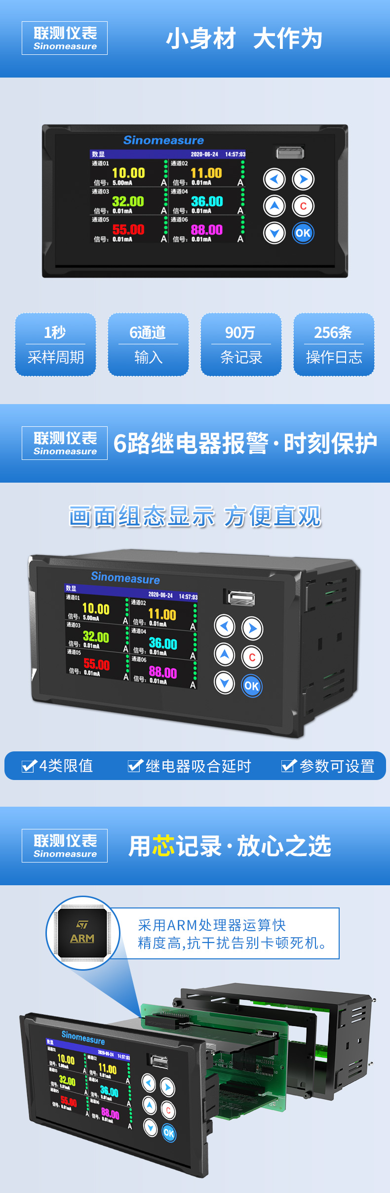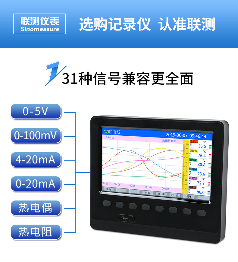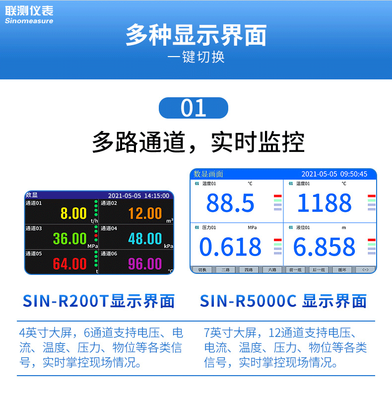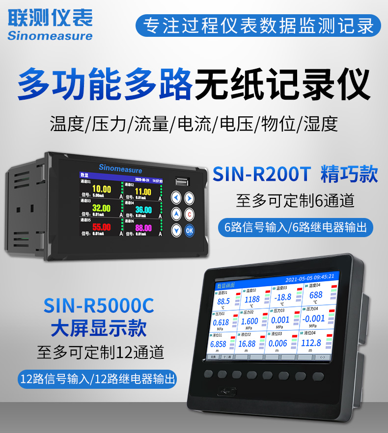 產品名稱:聯測_SIN-R200T_1~6路可選_記錄儀溫度/壓力/電流/電壓/頻率等多種參數