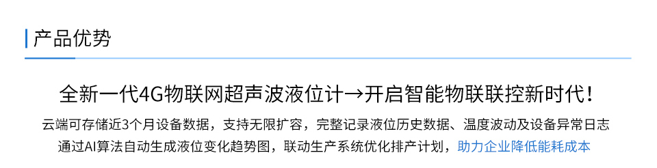產(chǎn)品描述:WSU-200 4G物聯(lián)超聲波液位計(jì)具有高可靠性、高性價(jià)比、易安裝維護(hù)的液位/物位測(cè)量儀器,可廣泛用于各種液體和固體物料高度的測(cè)量。本產(chǎn)品可選配 NB-IoT 無線通訊功能,用戶可在儀表云平臺(tái)進(jìn)行數(shù)據(jù)查看和遠(yuǎn)程監(jiān)控。常見的應(yīng)用工況,如市政、化工、儲(chǔ)運(yùn)等工業(yè)環(huán)境中的河流、水池、儲(chǔ)罐等液位測(cè)量。咨詢熱線:400-185-1718