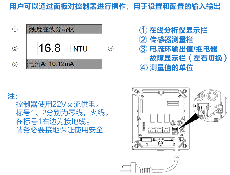 產(chǎn)品描述:濁度在線分析儀是針對(duì)飲用水水質(zhì)在線監(jiān)測(cè),量身研發(fā)的具有自主 知識(shí)產(chǎn)權(quán)的專利產(chǎn)品,具有超低濁度檢出限、高精度測(cè)量、設(shè)備長(zhǎng)時(shí)間 免維護(hù)、省水工作和數(shù)字化輸出的特點(diǎn),支持云平臺(tái)和手機(jī)移動(dòng)端數(shù)據(jù) 遠(yuǎn)程監(jiān)控,以及 RS485-modbus 通訊,可廣泛應(yīng)用于自來水出廠水、二次 供水、管網(wǎng)末梢水、直飲水、膜過濾水、游泳池、地表水等濁度在線監(jiān) 測(cè)。CN3